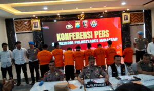 Konferensi pers yang diselenggarakan di Area Spot Payung Polres Gowa ini dipimpin langsung oleh Kapolres Gowa AKBP R.T.S Simanjuntak, S.H., S.I.K., M.M., M.I.K., didampingi oleh Wakapolres Gowa KOMPOL Gani, S.H., M.H., Kasi Humas IPTU Hamsir, KBO Satreskrim IPTU Kamaruddin dan IPDA Risman Tegar, S.H. serta dihadiri oleh awak media.