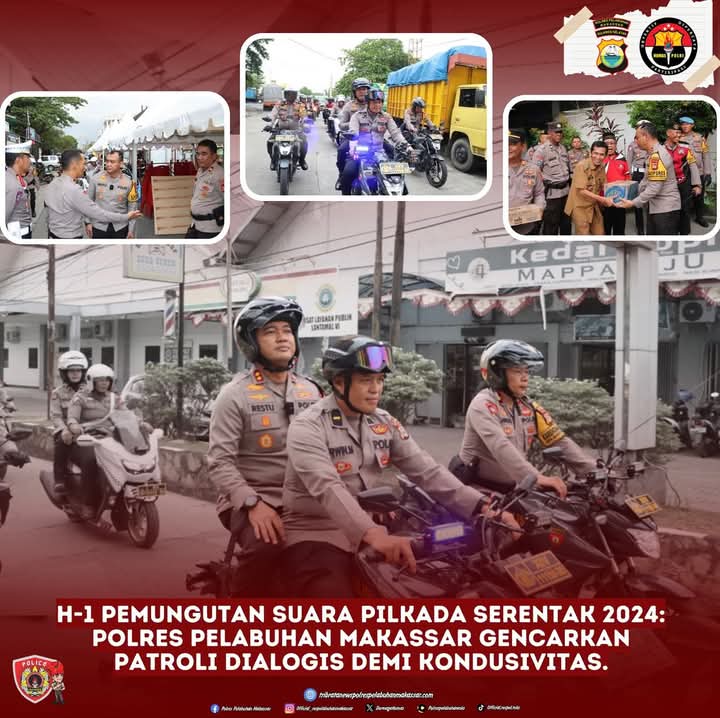 H-1 Pemungutan Suara Pilkada Serentak 2024: Polres Pelabuhan Makassar Gencarkan Patroli Dialogis Demi Kondusivitas