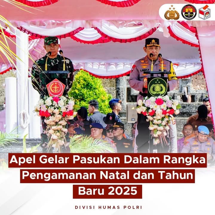 Jejakterkini.Online Kapolri Jenderal Polisi Drs. Listyo Sigit Prabowo, M.Si., bersama Panglima TNI Jenderal TNI Agus Subiyanto, S.E., M.Si., memimpin Apel Gelar Pasukan Operasi Lilin 2024 di Lapangan Puputan Margarana Renon, Bali, Jumat (20/12).