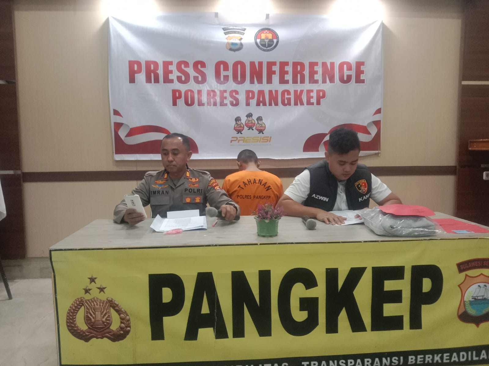 Press release tersebut disampaikan oleh Kasi Humas Polres Pangkep, AKP Imran, yang didampingi oleh Kanit Reskrim Ipda Aswin dan Bripda Haerul, serta dihadiri oleh sejumlah personel kepolisian dan puluhan wartawan dari berbagai media.