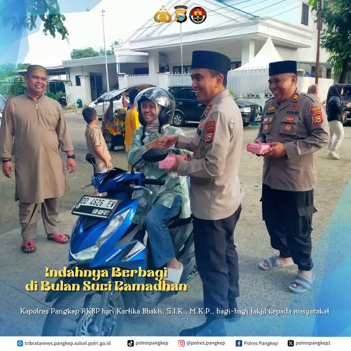 *”Kegiatan ini adalah wujud kepedulian Polres Pangkep kepada masyarakat, terutama di bulan suci Ramadhan. Semoga takjil yang kami bagikan dapat bermanfaat dan menjadi berkah bagi kita semua,”* ujar Kapolres Pangkep.