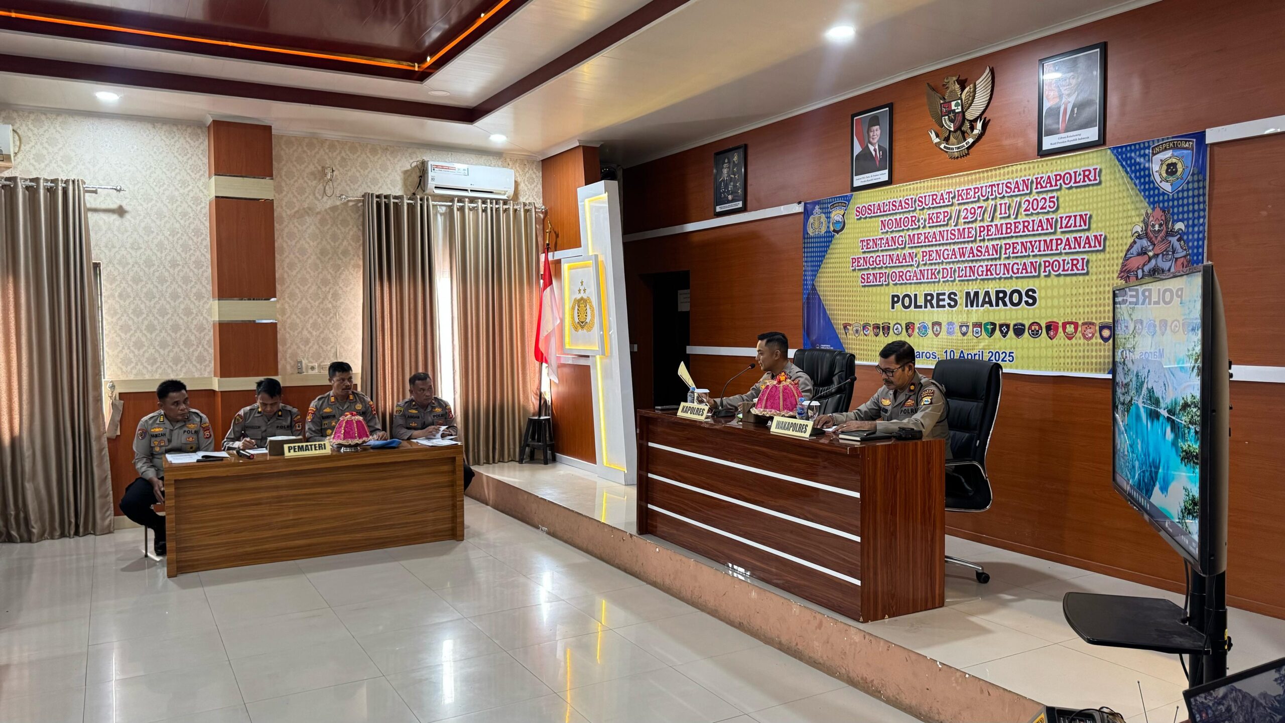 Kegiatan sosialisasi yang digelar di Aula Promoter tersebut dipimpin langsung Kapolres Maros AKBP Douglas Mahendrajaya didampingi Wakapolres Maros Kompol Ahmad Rosma dan diikuti oleh seluruh Kapolsek Jajaran dan perwira Polres Maros.