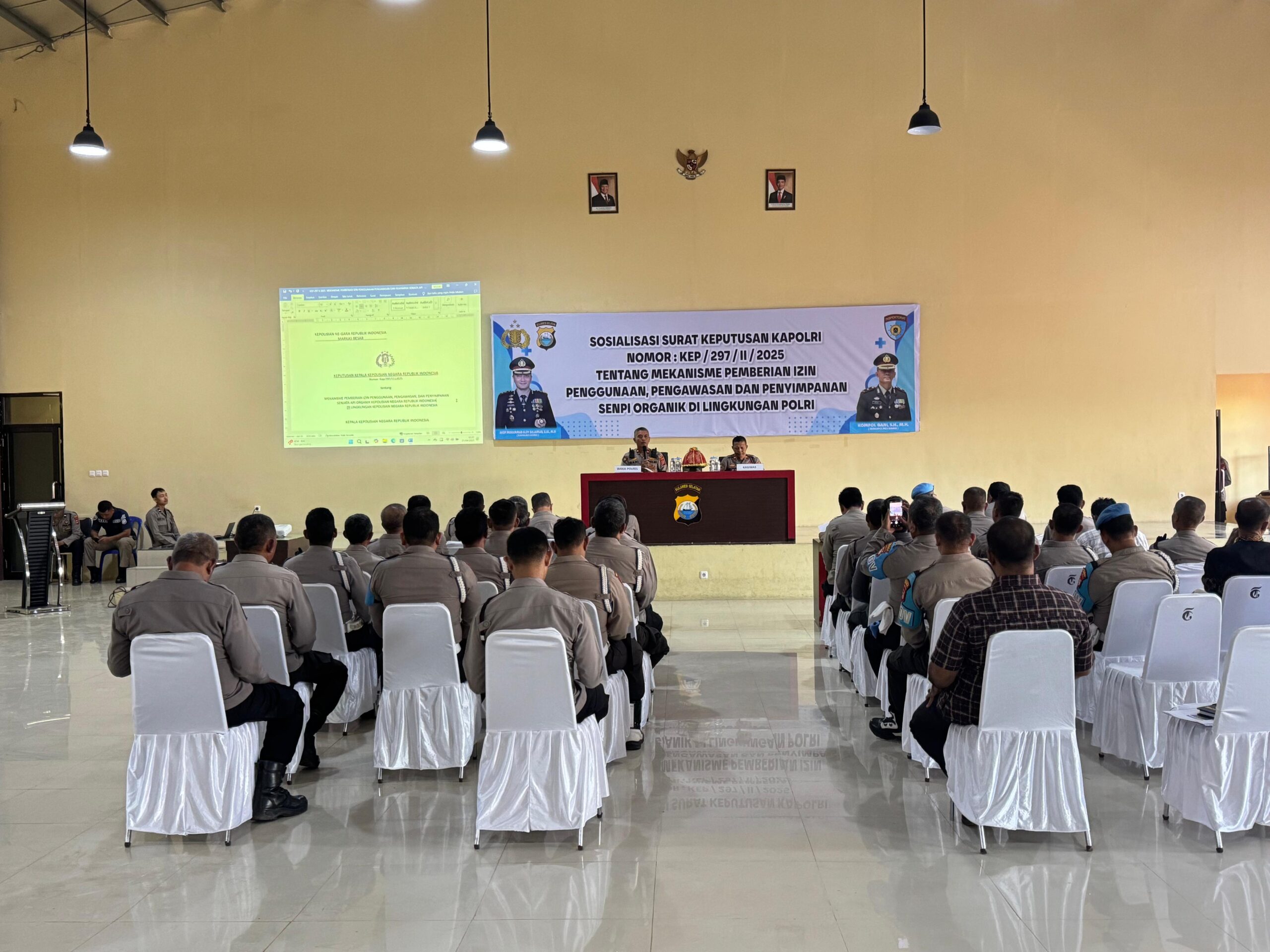 Jejakterkini.online — Polres Gowa melaksanakan kegiatan sosialisasi terkait Surat Keputusan Kapolri Nomor: KEP/297/II/2025 tentang Mekanisme Pemberian Izin Penggunaan, Pengawasan, dan Penyimpanan Senjata Api (Senpi) Organik di lingkungan Polri, Jum’at (25/4/2025).