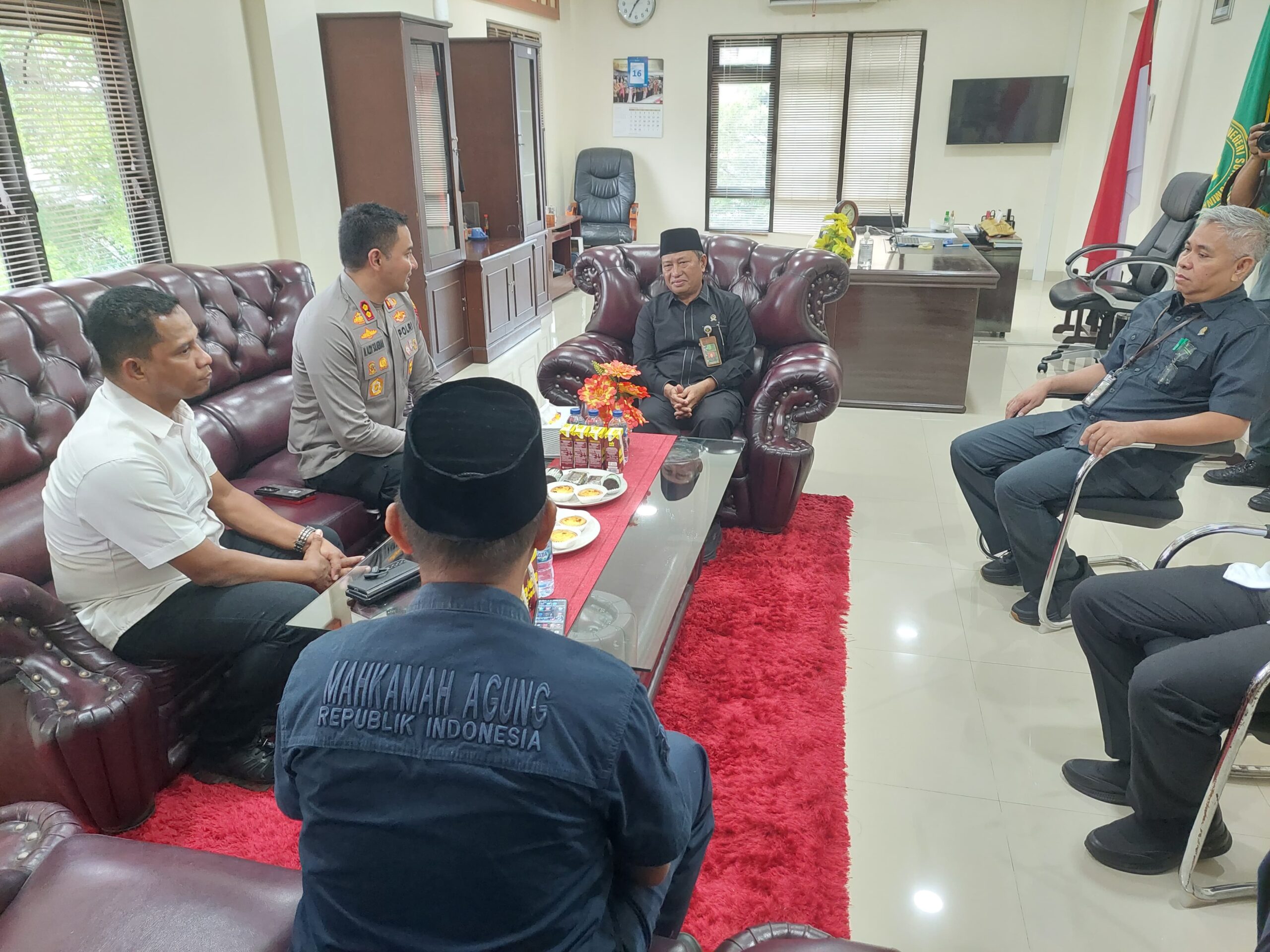 Kehadiran Kapolres Gowa disambut langsung oleh Ketua Pengadilan Negeri Gowa, Dr. Hasanuddin, S.H., M.H., di ruang kerjanya. Pertemuan berlangsung dalam suasana akrab dan penuh kehangatan.