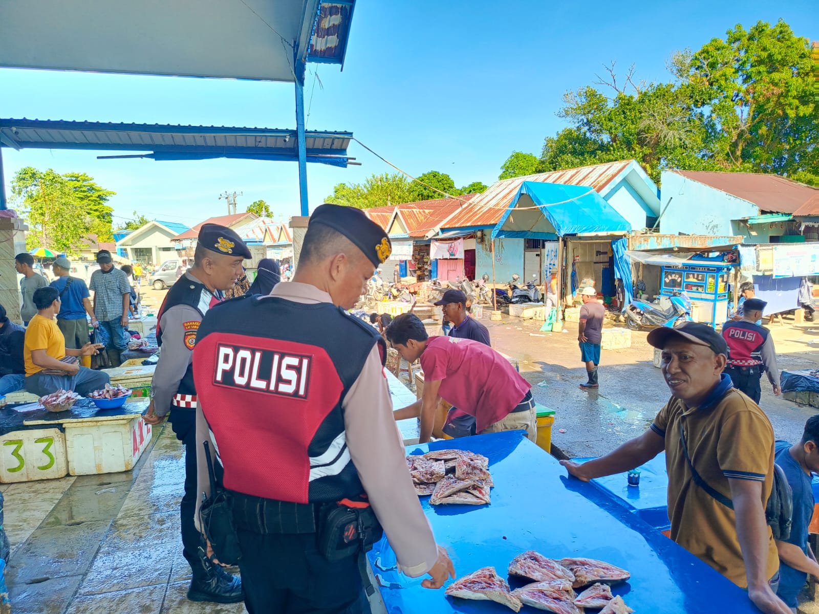 Seperti yang terlihat pada hari ini, personel Sat Samapta Polres Maros menyambangi Pasar pelelangan ikan labuang Maros, salah satu pusat perekonomian utama di daerah tersebut.