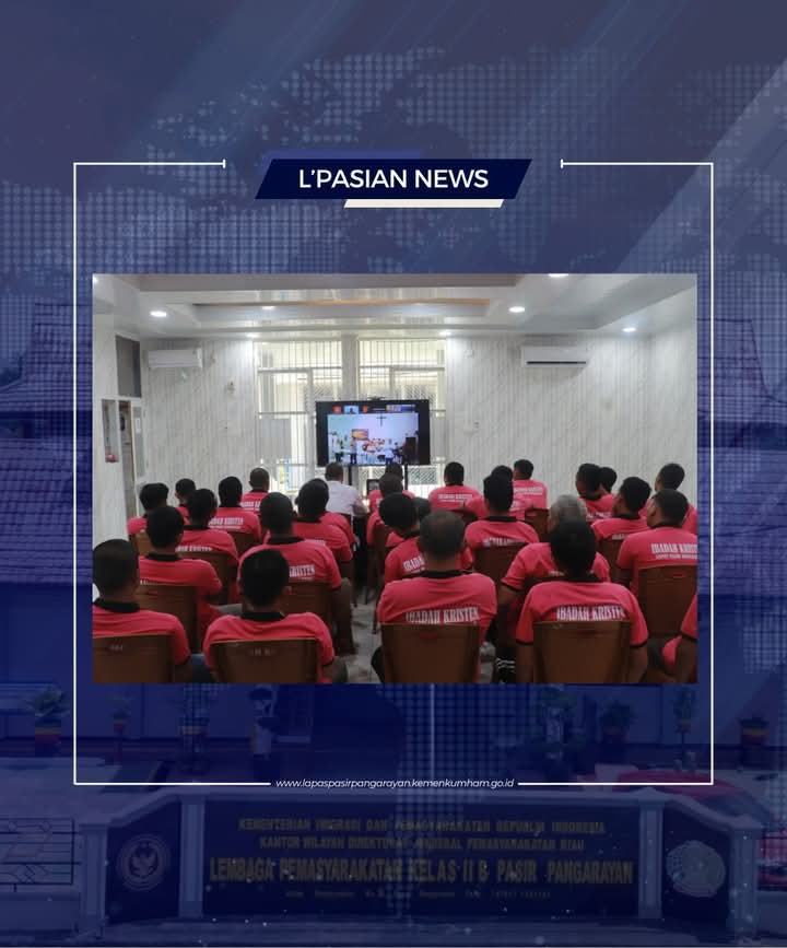 Kegiatan ibadah yang dilaksanakan secara daring ini merupakan bagian dari program pembinaan kerohanian yang rutin digelar oleh Lapas Pasir Pangarayan, yang kali ini merupakan hasil kerja sama antara Direktorat Jenderal Pemasyarakatan bersama dengan Yayasan Pelayanan Kasih Bethesda.