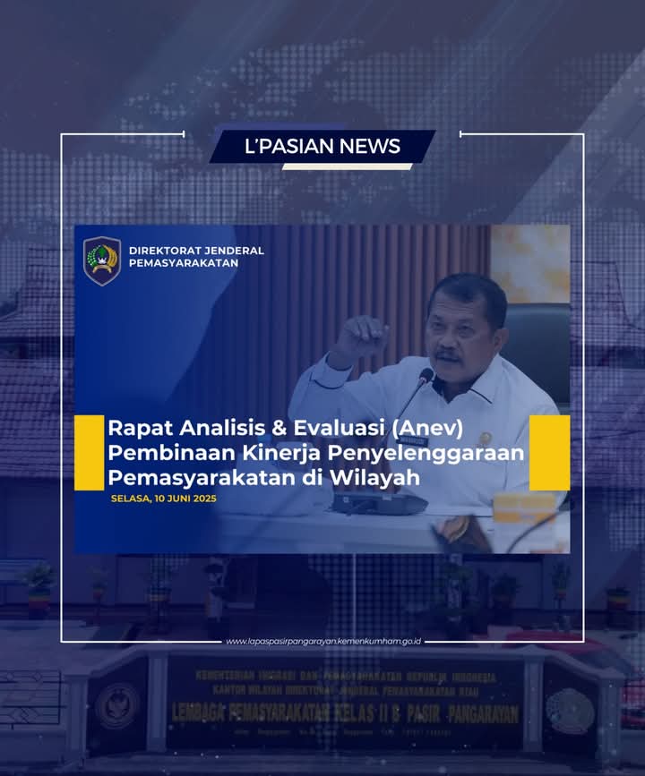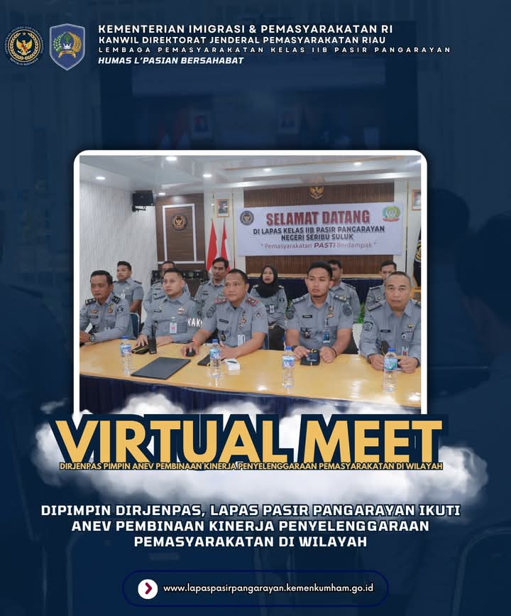 Jejakterkini.online — Pasir Pangarayan – Direktorat Jenderal Pemasyarakatan (Ditjenpas) menggelar Rapat Analisis dan Evaluasi (Anev) Pembinaan Kinerja Penyelenggaraan Pemasyarakatan di wilayah yang dipimpin langsung oleh Direktur Jenderal Pemasyarakatan, Mashudi. Rapat ini merupakan langkah strategis dalam memperkuat pelaksanaan tugas dan fungsi pemasyarakatan secara menyeluruh yang dilaksanakan secara virtual zoom meeting pada Selasa, (10/06/2025).
