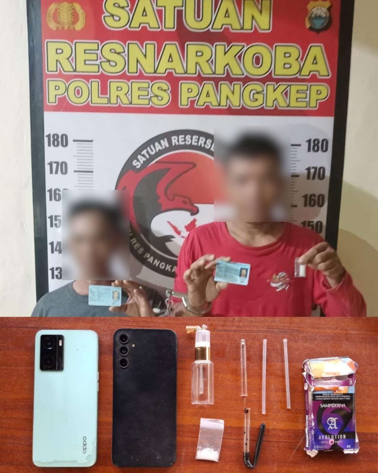 Jejakterkini.online — Pangkep – Satuan Reserse Narkoba Polres Pangkep kembali menunjukkan komitmennya dalam memberantas peredaran gelap narkoba. Pada Selasa, 10 Juni 2025 sekitar pukul 01.00 Wita, personel Sat Resnarkoba yang dipimpin langsung oleh Kasat Resnarkoba IPTU Hasrul, S.Sos., bersama Kanit Opsnal IPDA Andi Nurtaslim, S.Psi., serta tim Unit Opsnal, berhasil mengamankan dua orang terduga pelaku penyalahgunaan narkotika di wilayah hukum Polres Pangkep.