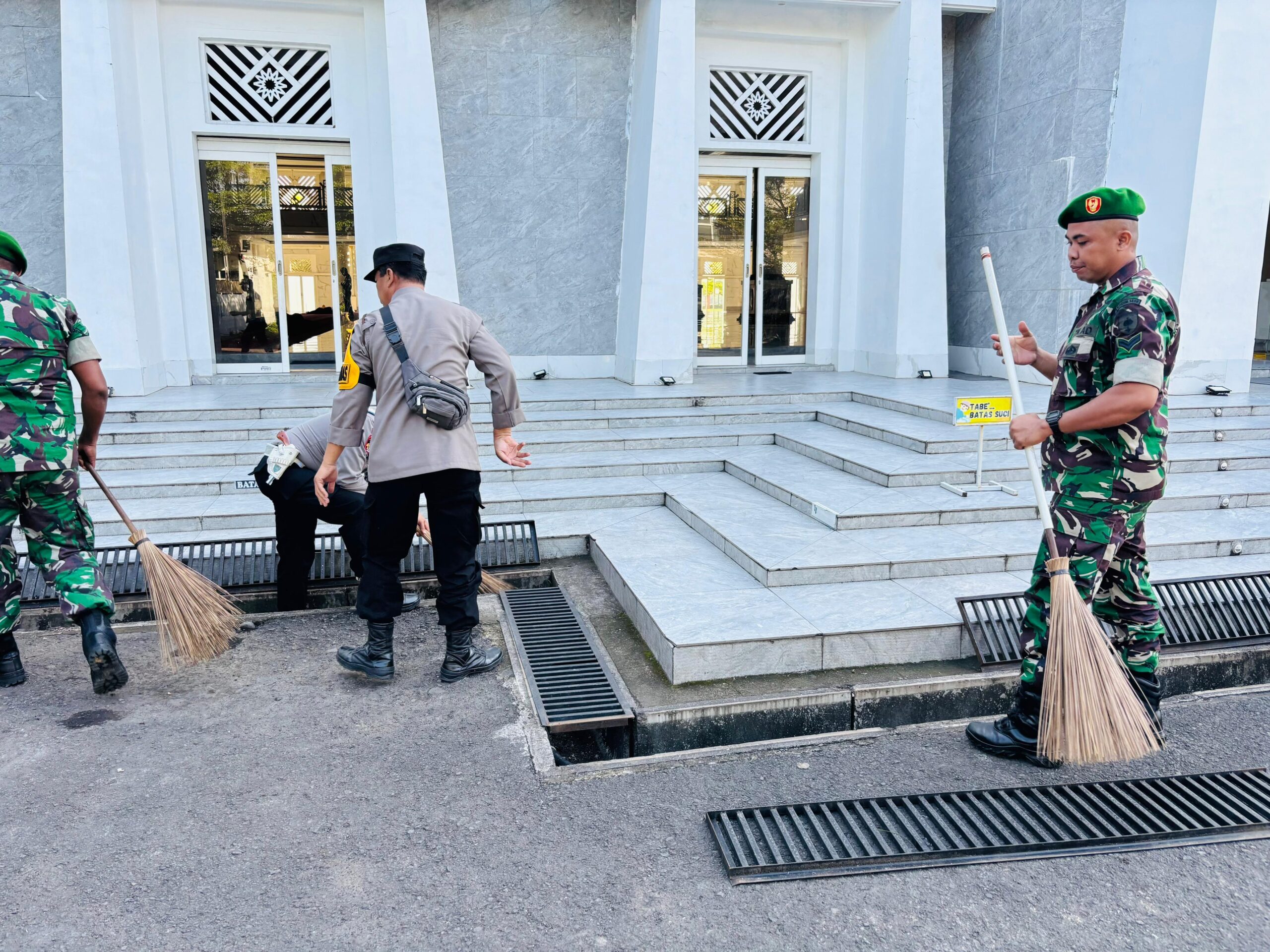 Kegiatan ini merupakan wujud sinergitas antara TNI-Polri dalam menjaga kebersihan lingkungan, khususnya di tempat ibadah, serta bagian dari rangkaian kegiatan menyambut HUT Bhayangkara yang ke-79.