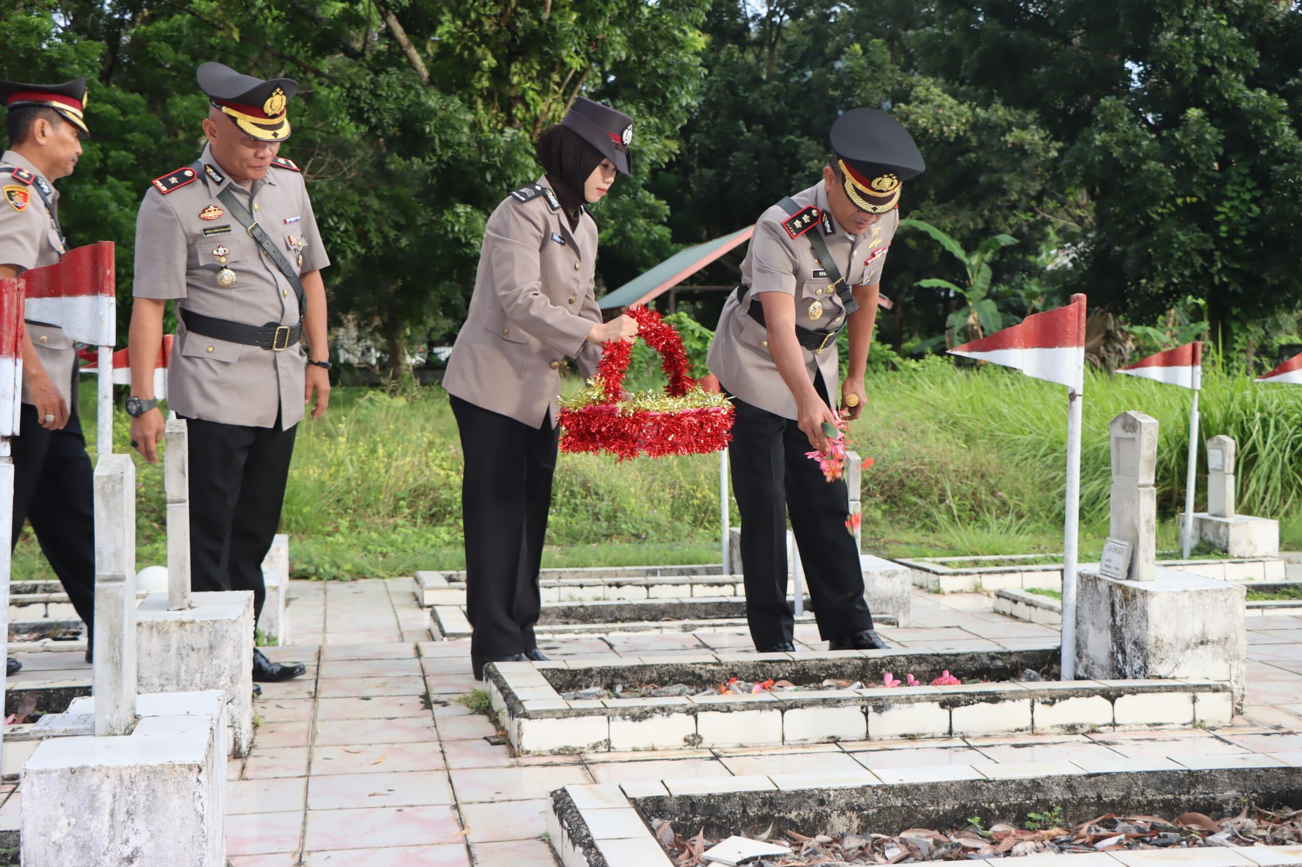 Usai pelaksanaan upacara, kegiatan dilanjutkan dengan tabur bunga di pusara para pahlawan, yang dipimpin langsung oleh Kapolres Pangkep bersama para Pejabat Utama Polres dan peserta upacara lainnya.