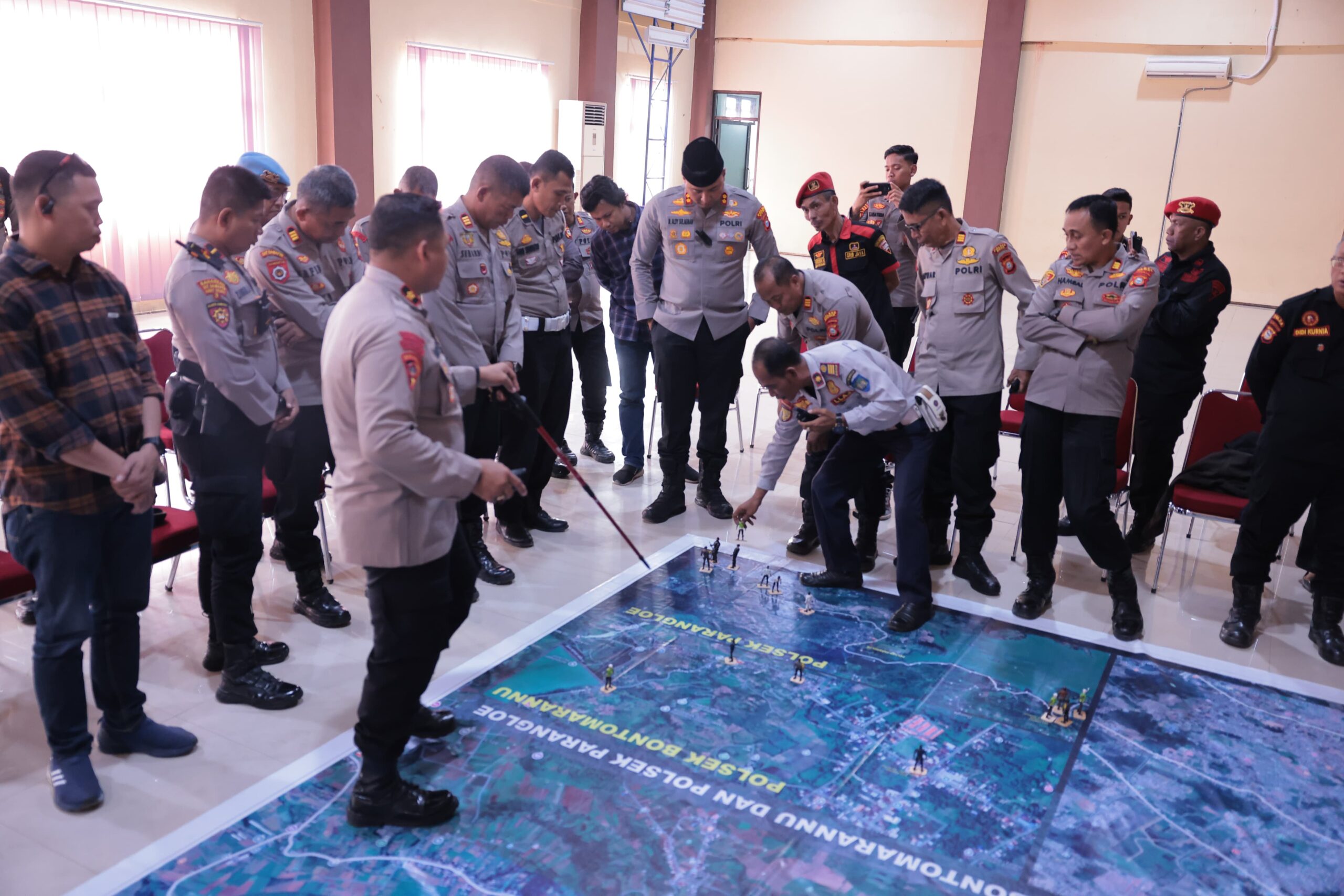 Jejakterkini.Online Dalam rangka kesiapan pengamanan event tahunan Beautiful Malino 2025, Polres Gowa menggelar kegiatan Latihan Tactical Floor Game (TFG) pada Jum’at (4/7/2025) di Aula Rewako Wicaksana Laghawa Polres Gowa.