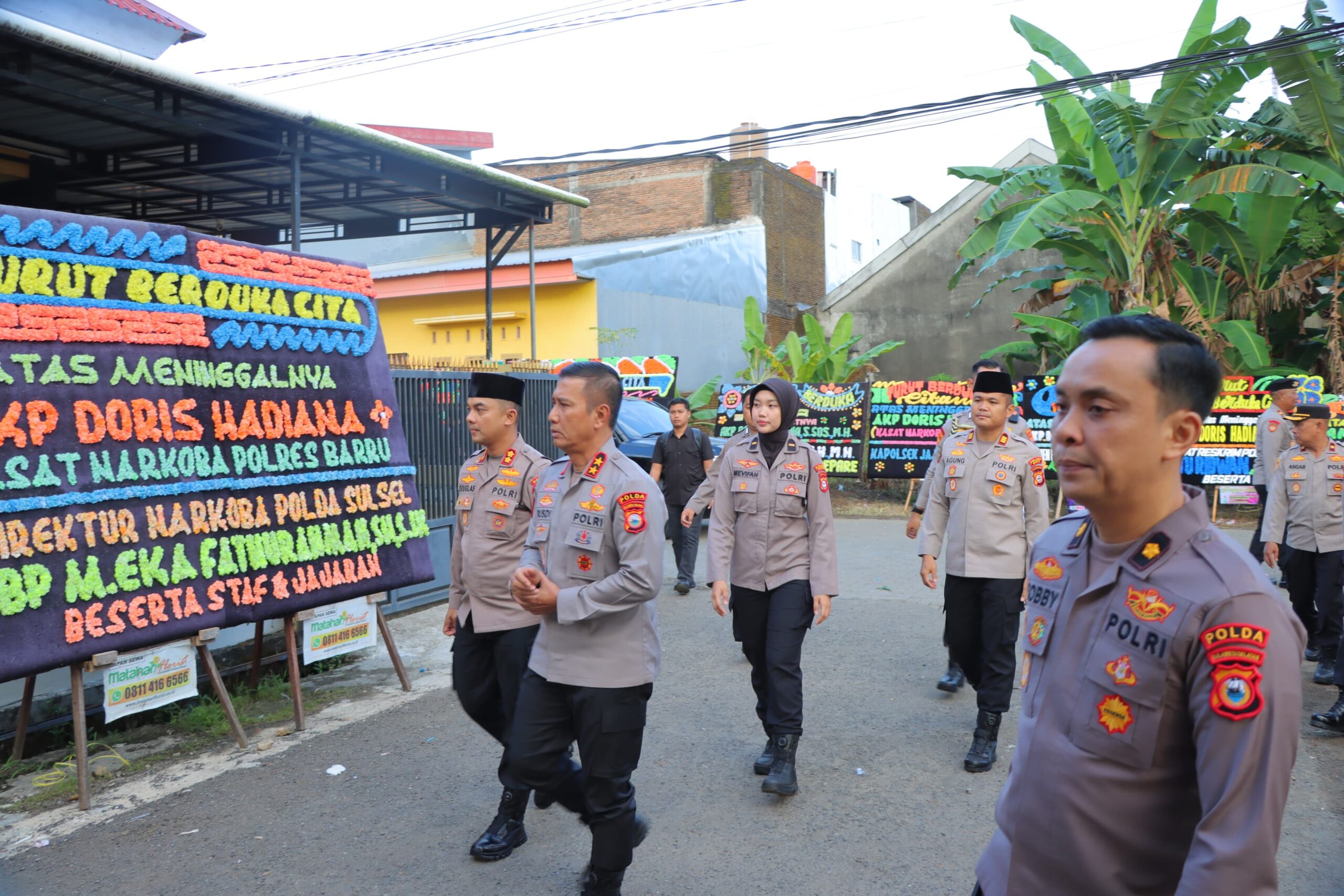 Jejakterkini.online — Maros, Sulsel — Kapolres Maros, AKBP Douglas Mahendrajaya, S.H., S.I.K., M.I.K., M.Tr.Opsla turut mendampingi Kapolda Sulawesi Selatan, Irjen Pol Rusdi Hartono, S.I.K., M.H., saat melayat ke rumah duka almarhum AKP Doris Hadiana, Kasat Narkoba Polres Barru, yang wafat pada Rabu pagi (3/7).