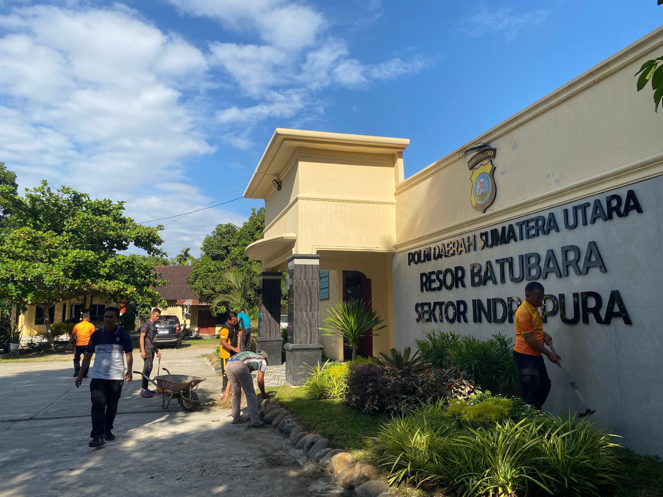Jejakterkini.online — Sumatra Utara Batu Bara) Mwdia Jejakterkkni Online) Kapolsek Indrapura “AKP REYNOLD SILALAHI,S.H” bersama personil polsek indrapura melaksanakan kegiatan curve di lingkungan sekitaran mako polsek guna menjaga kebersihan dan kenyamanan bersama.