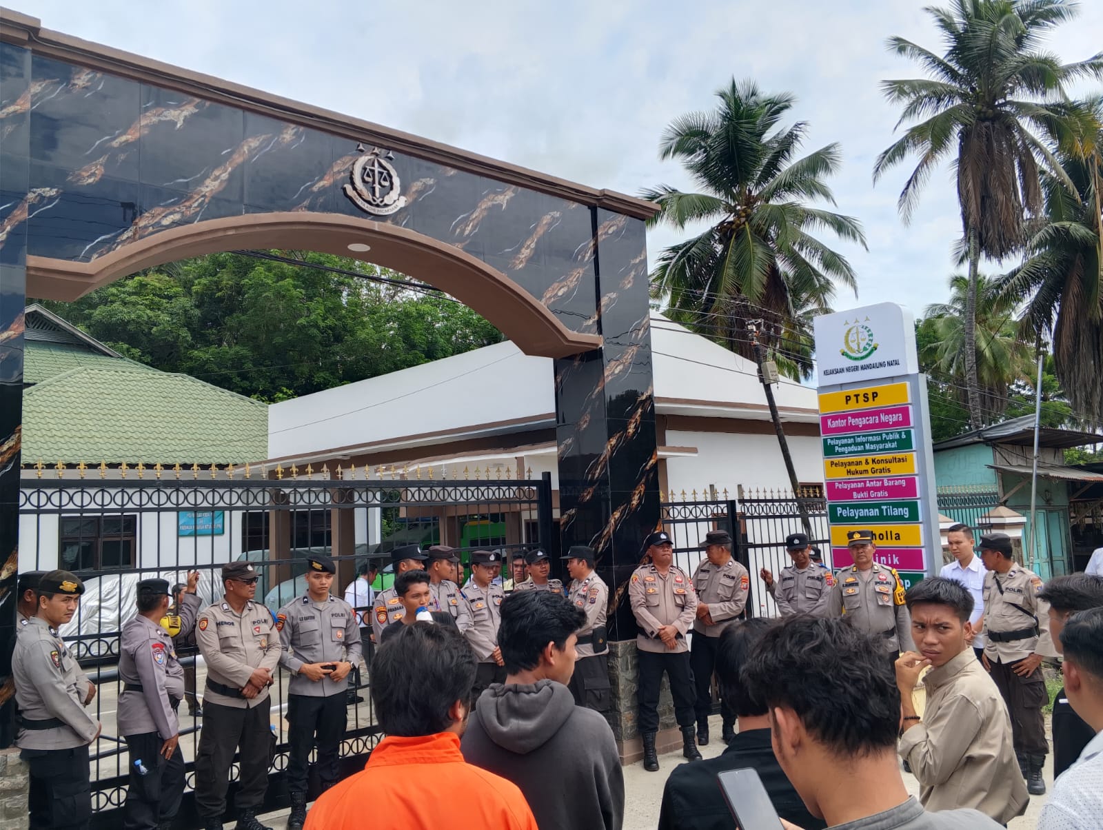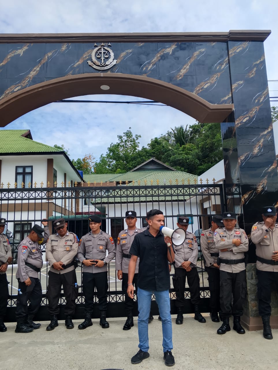 “Kami datang dengan data, bukan asumsi. Kalau Kepala Kejari cuti, tunjukkan suratnya! Jangan main petak umpet dengan publik,” teriak salah satu orator.