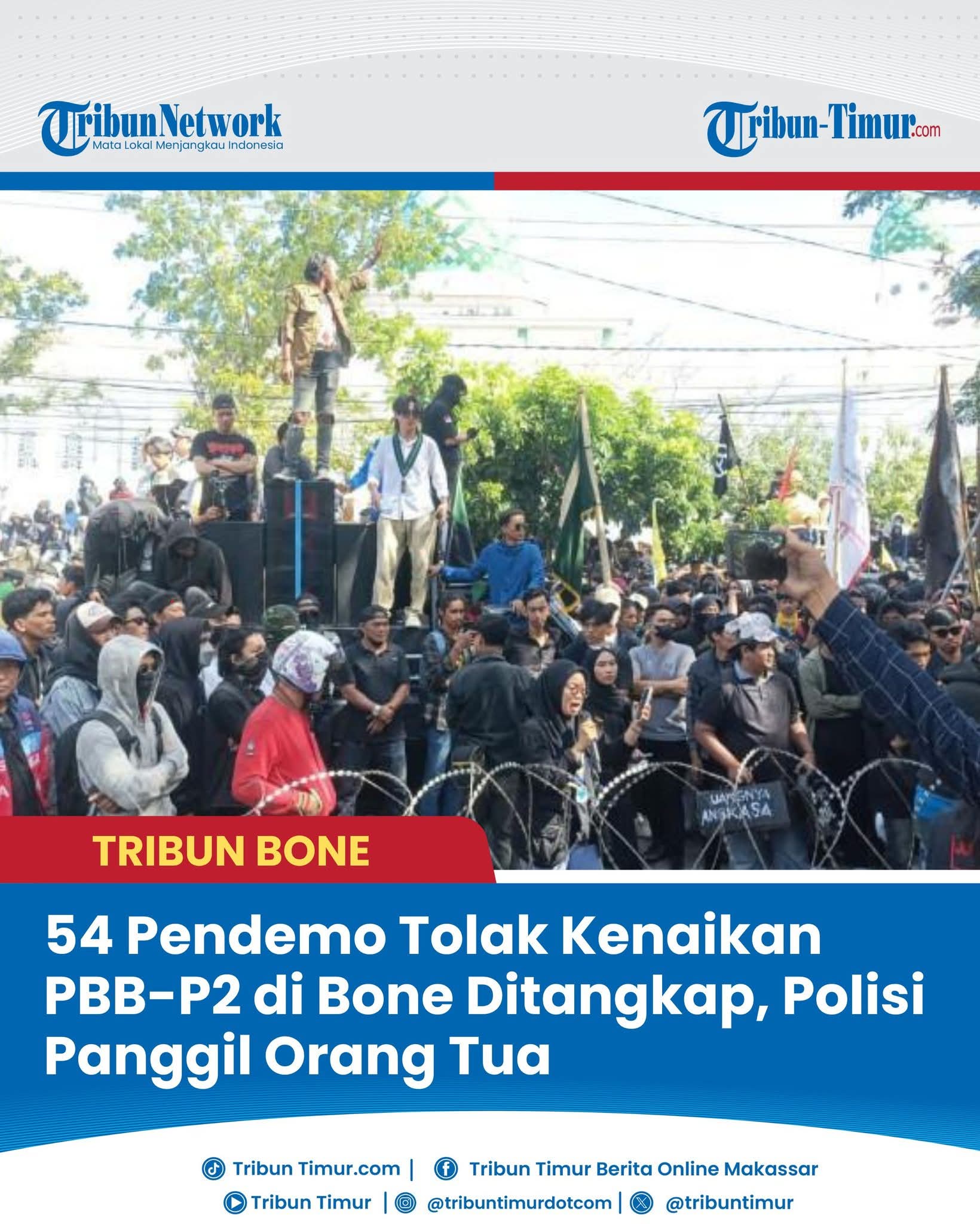 Jejakterkini.Online BONE – Sebanyak 54 orang diamankan polisi dalam aksi unjuk rasa menolak kenaikan PBB-P2 di Kantor Bupati Bone, Watampone, Sulawesi Selatan, Selasa (20/8/2025).