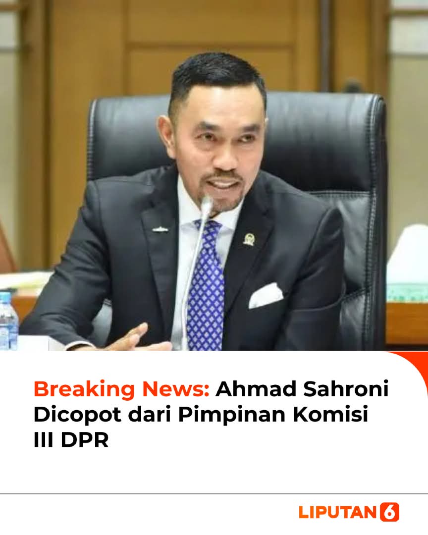 Jejakterkini.online — Ahmad Sahroni dicopot dari jabatannya sebagai Wakil Ketua Komisi III DPR. Keputusan tersebut tercantum dalam surat Fraksi Partai NasDem DPR yang ditandatangani Ketua Fraksi Victor Laiskodat dan juga Sahroni sendiri sebagai Sekretaris Fraksi NasDem.