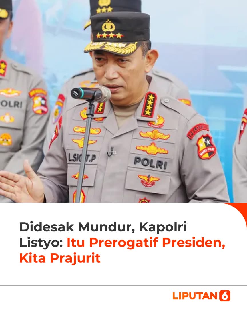 “Terkait dengan isu yang menyangkut dengan Kapolri itu hak prerogatif presiden. Kita prajurit kapan aja siap,” kata Kapolri saat ditanya soal desakan mundur.
