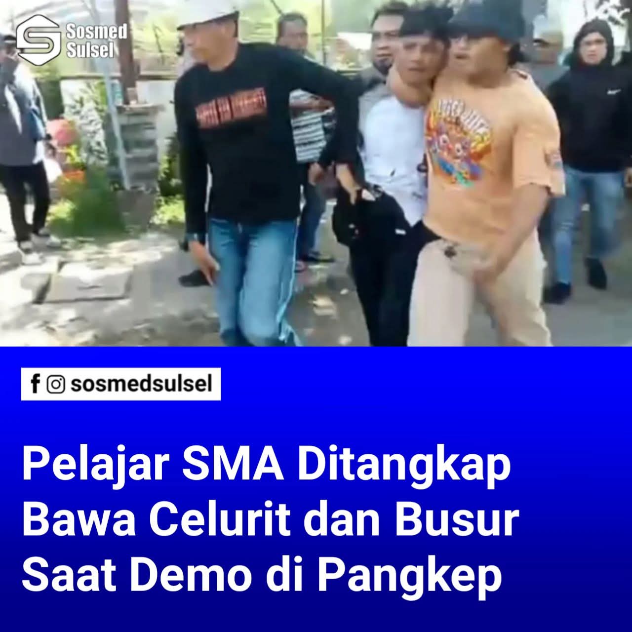 Jejakterkini.Online Seorang siswa SMA berinisial AR (16) diamankan polisi saat mengikuti aksi demonstrasi di Kabupaten Pangkep, Sulawesi Selatan. Remaja berseragam sekolah itu kedapatan membawa senjata tajam (sajam) berupa celurit, busur, dan lima anak panah di dalam tasnya.