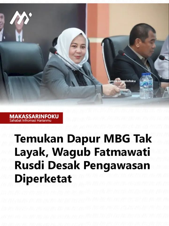 Jejakterkini.Online Wakil Gubernur Sulawesi Selatan, Fatmawati Rusdi menyoroti keberadaan dapur Makan Bergizi Gratis (MBG) di beberapa daerah yang dinilai tidak memenuhi standar operasional.