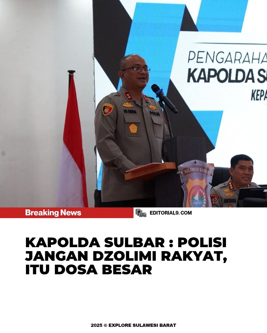 Jejakterkini.online — Kapolda Sulawesi Barat Irjen Pol Adi Deriyan Jayamarta mengingatkan seluruh jajaran kepolisian agar tidak melupakan makna sejati tugas Polri sebagai pelindung dan pengayom masyarakat. Pesan tegas itu disampaikan saat kunjungan kerja ke Polres Pasangkayu, Senin (13/10/2025).