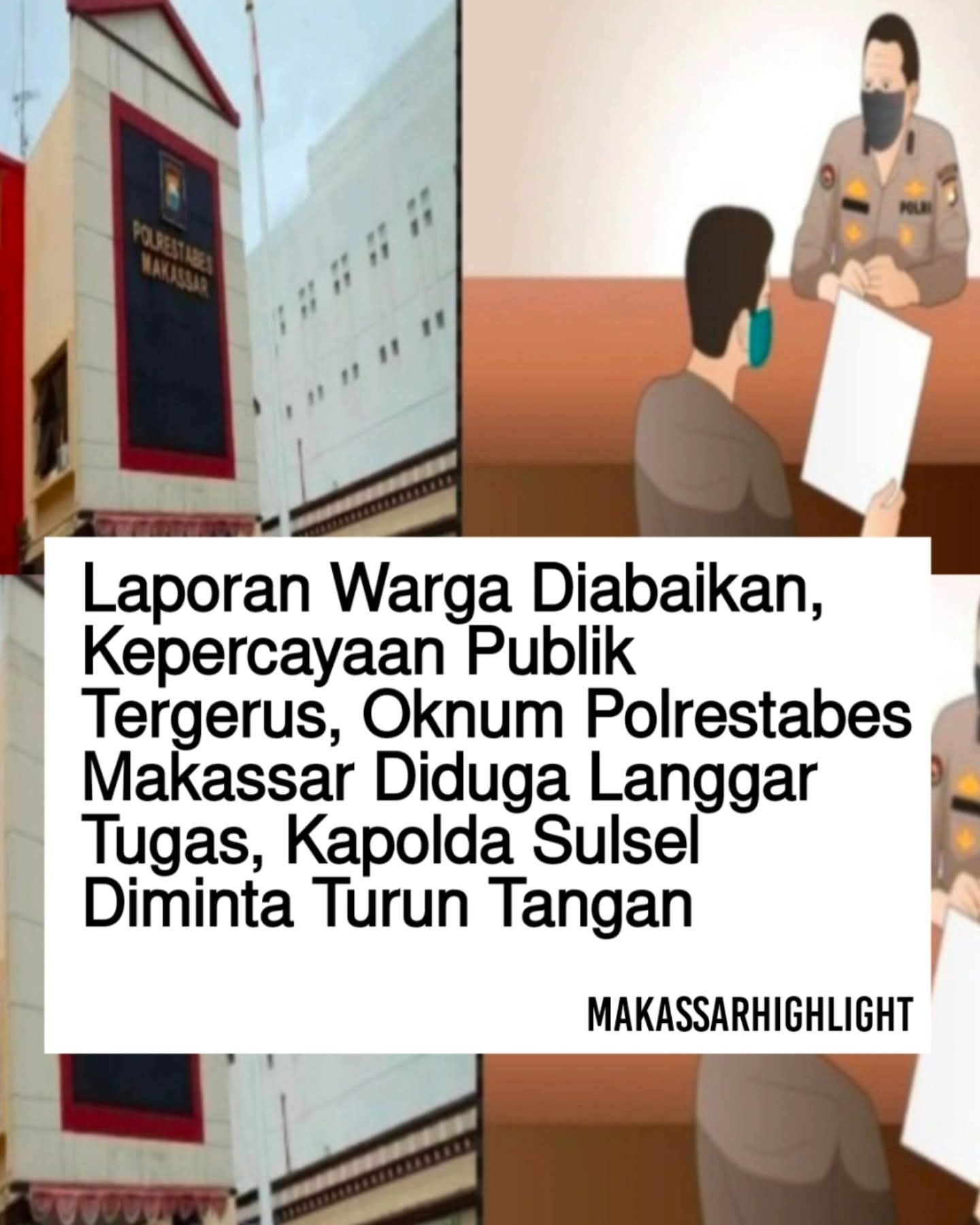 Jejakterkini.online — Kekecewaan mendalam disuarakan oleh warga asal Kabupaten Sidenreng Rappang (Sidrap) terhadap kinerja aparat penegak hukum di Polrestabes Makassar. Pasalnya, laporan resmi yang mereka layangkan sejak awal tahun 2025 tak kunjung mendapatkan kejelasan, bahkan terkesan diabaikan oleh pihak kepolisian. Selasa,21/10/2025.