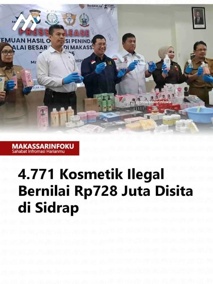 Jejakterkini.online — Badan Pengawas Obat dan Makanan (BBPOM) di Makassar menyita 4.771 produk kosmetik ilegal tanpa izin edar dari 55 jenis berbeda dengan nilai ekonomi mencapai Rp728 juta.