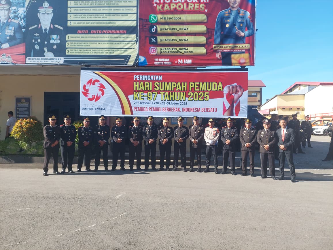 Jejakterkini.online — Dalam rangka memperingati Hari Sumpah Pemuda ke-97, Polres Gowa menggelar upacara penuh khidmat di Lapangan apel “Briptu Ashabur Rifky” Polres Gowa, Selasa (28/10/2025) pagi.