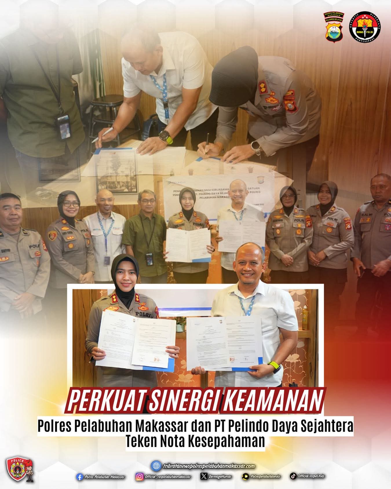 Jejakterkini.online — Dalam upaya memperkuat sinergitas dan meningkatkan profesionalisme tenaga keamanan di wilayah Pelabuhan Makassar, Polres Pelabuhan Makassar bersama PT Pelindo Daya Sejahtera (PDS) resmi menandatangani Nota Kesepahaman (MoU) tentang pembinaan dan pengembangan kemampuan tenaga keamanan.