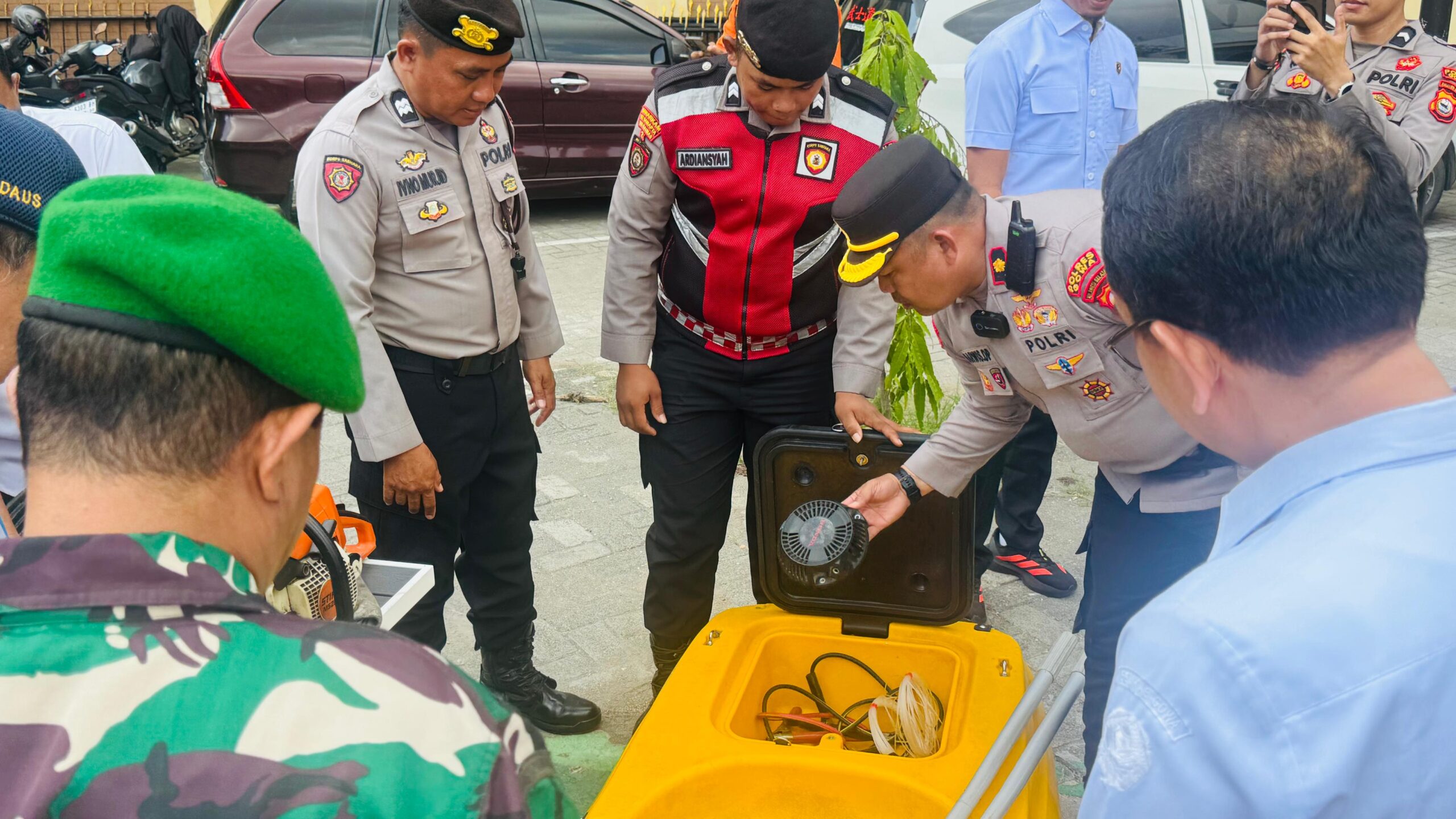 Apel ditandai dengan pengecekan langsung terhadap kesiapan personel, kendaraan operasional, serta peralatan tanggap darurat dari masing-masing instansi.