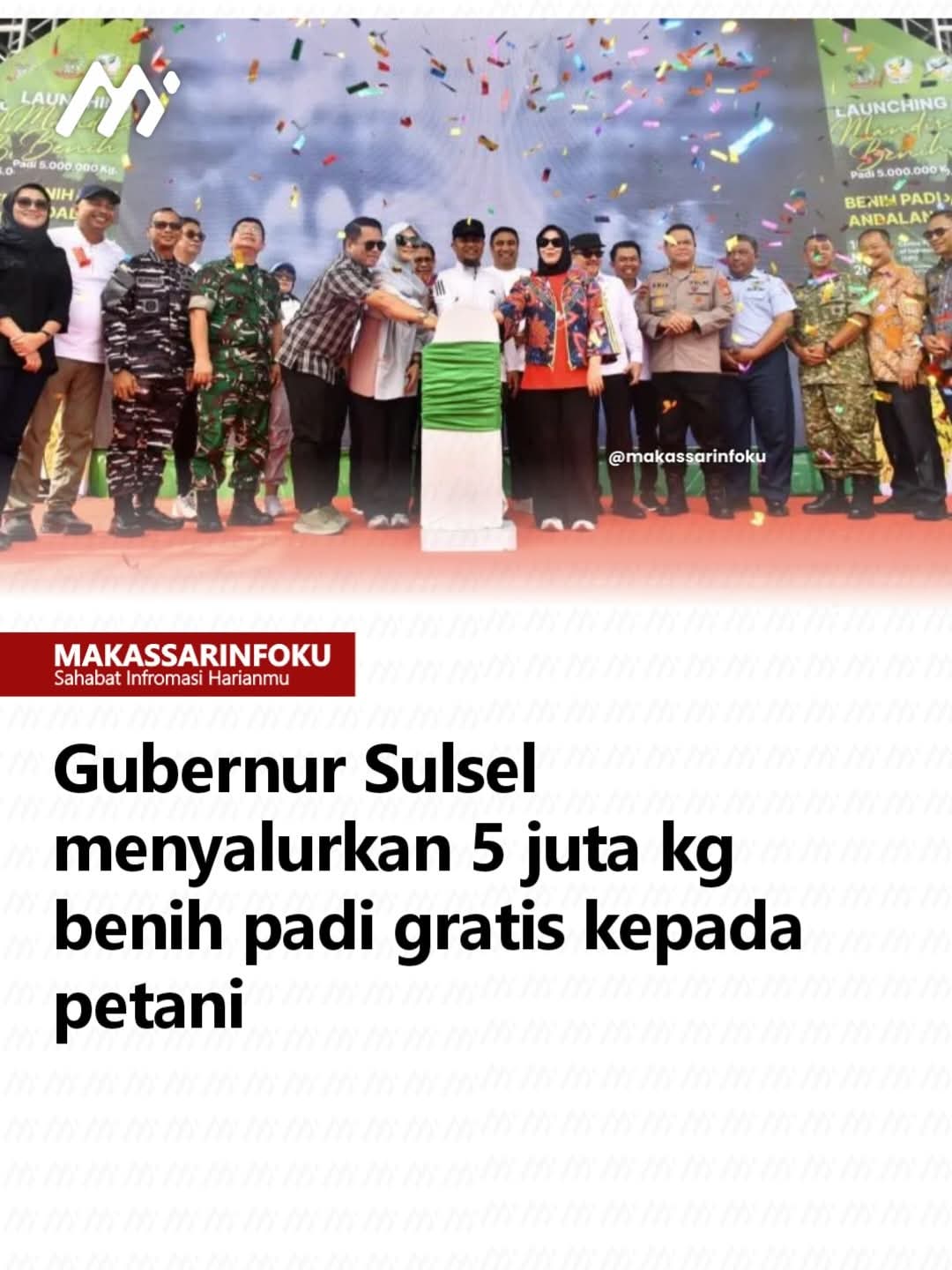 Jejakterkini.online — Gubernur Sulawesi Selatan (Sulsel) Andi Sudirman Sulaiman resmi meluncurkan Program Mandiri Benih Padi Andalan Sulsel Tahun 2025 sebanyak 5 juta kg, untuk dibagikan secara gratis kepada petani di provinsi ini, di Kawasan Center Point of Indonesia (CPI) Makassar, Minggu.