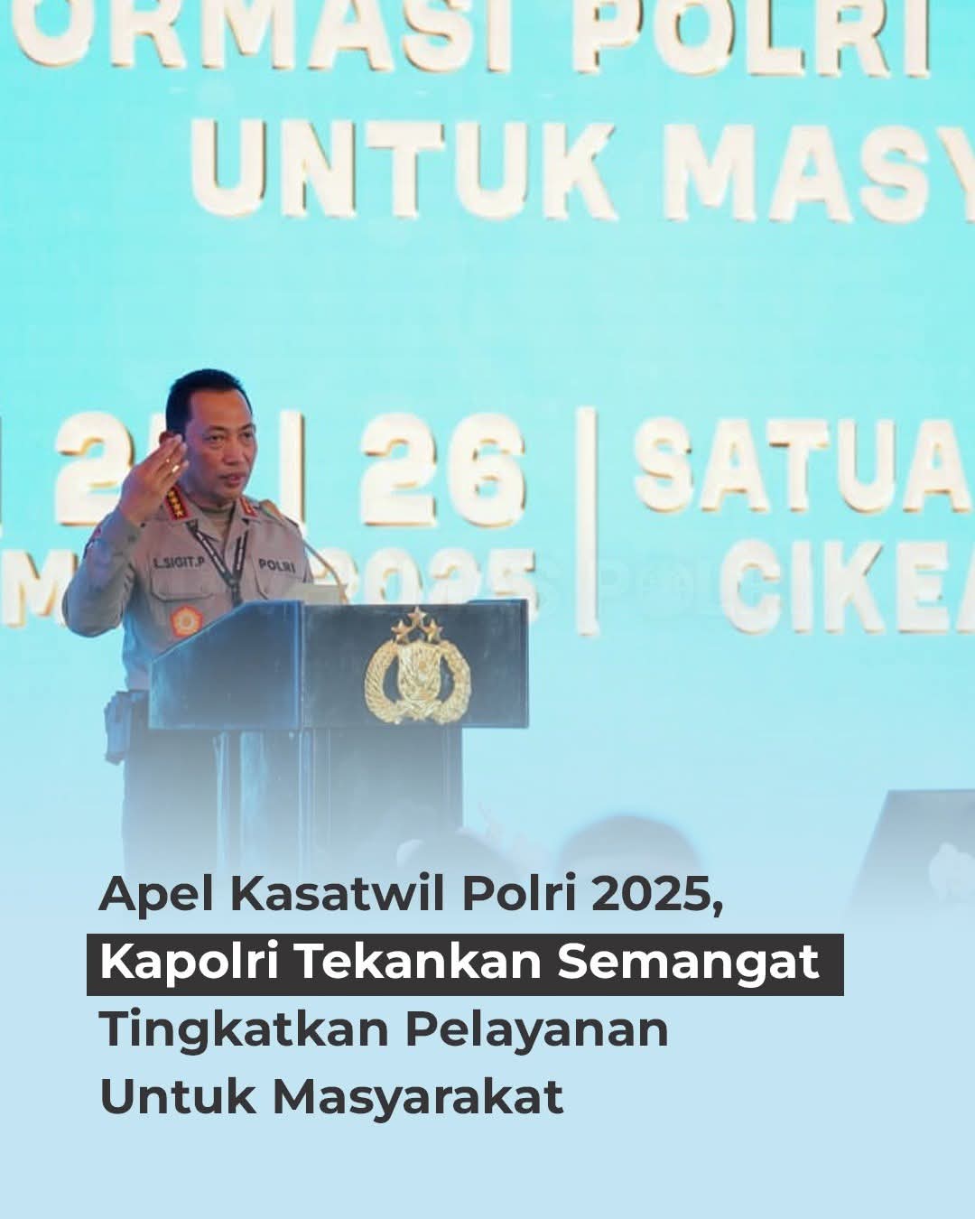 Jejakterkini.online — Kapolri Jenderal Polisi Drs. Listyo Sigit Prabowo, M.Si., menegaskan pentingnya semangat jajaran Polri dalam meningkatkan kualitas pelayanan publik. Hal tersebut disampaikan dalam acara Apel Kasatwil Polri 2025 di Mako Satuan Latihan Korbrimob Polri, Cikeas, Bogor, Jawa Barat, Senin (24/11). Dalam kesempatan tersebut, Kapolri menyampaikan bahwa Apel Kasatwil Polri tidak hanya menjadi forum konsolidasi, tetapi juga ruang untuk memperkuat internal Polri. Mengusung tema “Transformasi Polri yang Profesional untuk Masyarakat”, Kapolri menjelaskan bahwa konsep tersebut bertujuan membangun soliditas, kekompakan, dan karakter kepemimpinan para pejabat wilayah. Jika sebelumnya berfokus pada pola “menjaga”, maka kini Polri akan lebih mengedepankan pendekatan “melayani”, sebagaimana amanat untuk menjamin hak kebebasan berpendapat masyarakat.