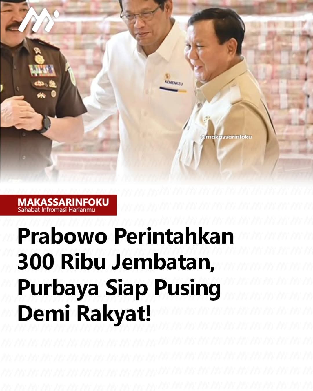 Jejakterkini.online — Presiden Prabowo Subianto menambah tugas besar untuk Menteri Keuangan Purbaya Yudhi Sadewa dengan memerintahkan penyediaan anggaran pembangunan 300 ribu jembatan. Instruksi ini lahir setelah Prabowo menyaksikan langsung kondisi anak-anak sekolah yang harus mempertaruhkan nyawa menyeberangi sungai deras demi menuntut ilmu. Dalam peringatan Hari Guru Nasional 2025, Prabowo menegaskan bahwa pusingnya Purbaya menyiapkan anggaran adalah pengorbanan mulia untuk rakyat.