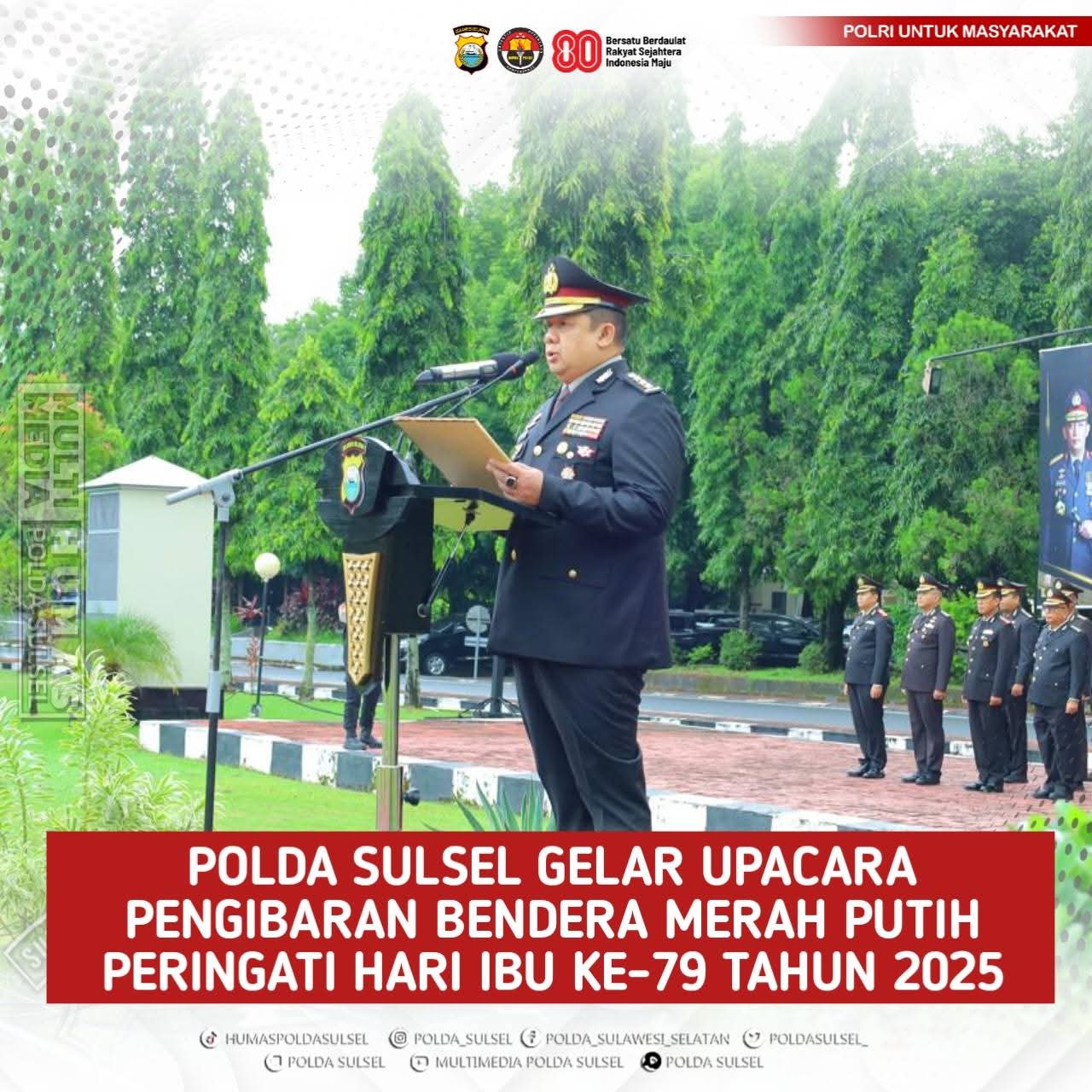 Upacara tersebut dipimpin oleh Irwasda Polda Sulawesi Selatan Kombes Pol. Ai Afriandi, S.H., S.I.K., M.M., selaku Inspektur Upacara, dan diikuti oleh Pejabat Utama Polda Sulsel serta seluruh personel Polda Sulsel.