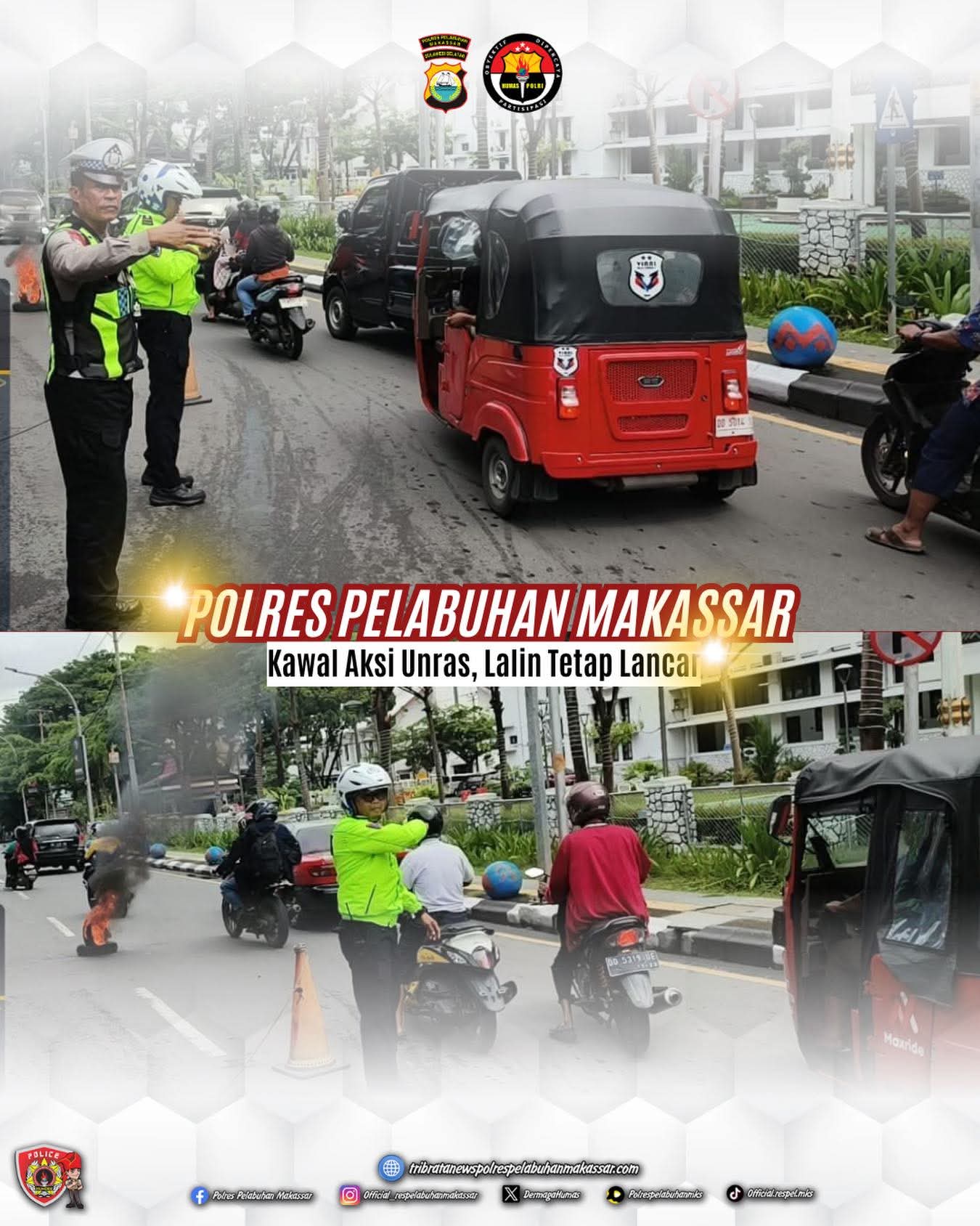 Jejakterkini.online — Polres Pelabuhan Makassar mengawal jalannya aksi unjuk rasa secara humanis dan profesional. Pengamanan dilakukan untuk memastikan aksi berjalan aman dan tertib, serta tidak mengganggu aktivitas masyarakat maupun pengguna jalan.