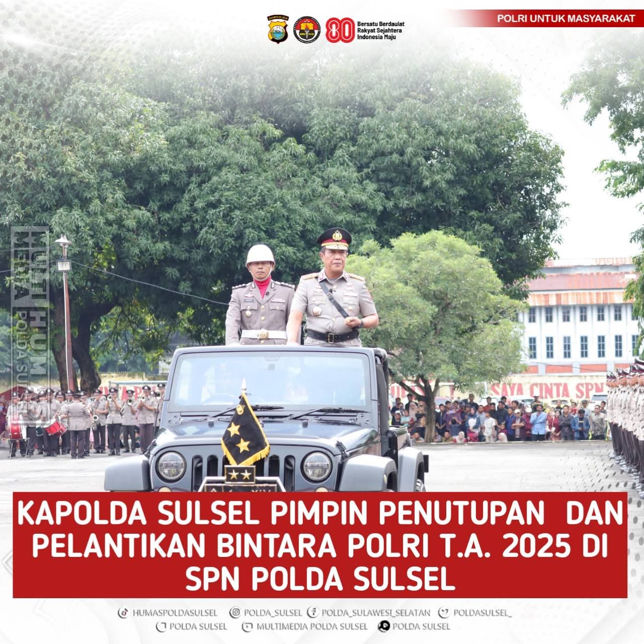 Jejakterkini.online — Kapolda Sulawesi Selatan Irjen Pol. Djuhandhani Rahardjo Puro, S.H., M.H. memimpin langsung Upacara Penutupan Pelantikan dan Pengambilan Sumpah Pendidikan Pembentukan Bintara Polri Tahun Anggaran 2025 yang berlangsung di Lapangan Upacara SPN Polda Sulsel, Rabu (24/12/2025).