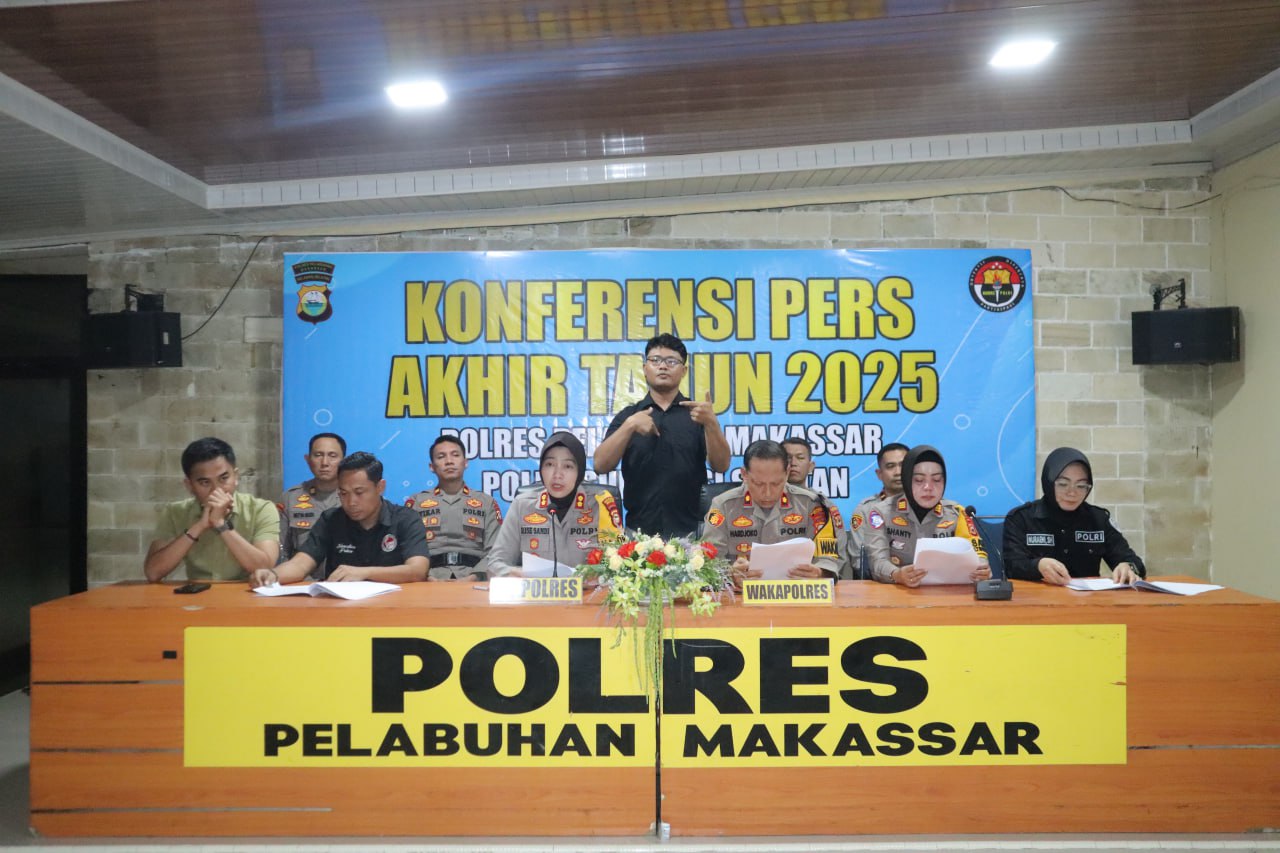 Jejakterkini.Online MAKASSAR – Kepolisian Resor (Polres) Pelabuhan Makassar menggelar konferensi pers rilis akhir tahun 2025 di Mapolres Pelabuhan Makassar. Kegiatan tersebut dipimpin langsung oleh Kapolres Pelabuhan Makassar, AKBP Rise Sandiyantanti, didampingi Wakapolres, para pejabat utama, serta Kasi Humas Polres Pelabuhan Makassar.