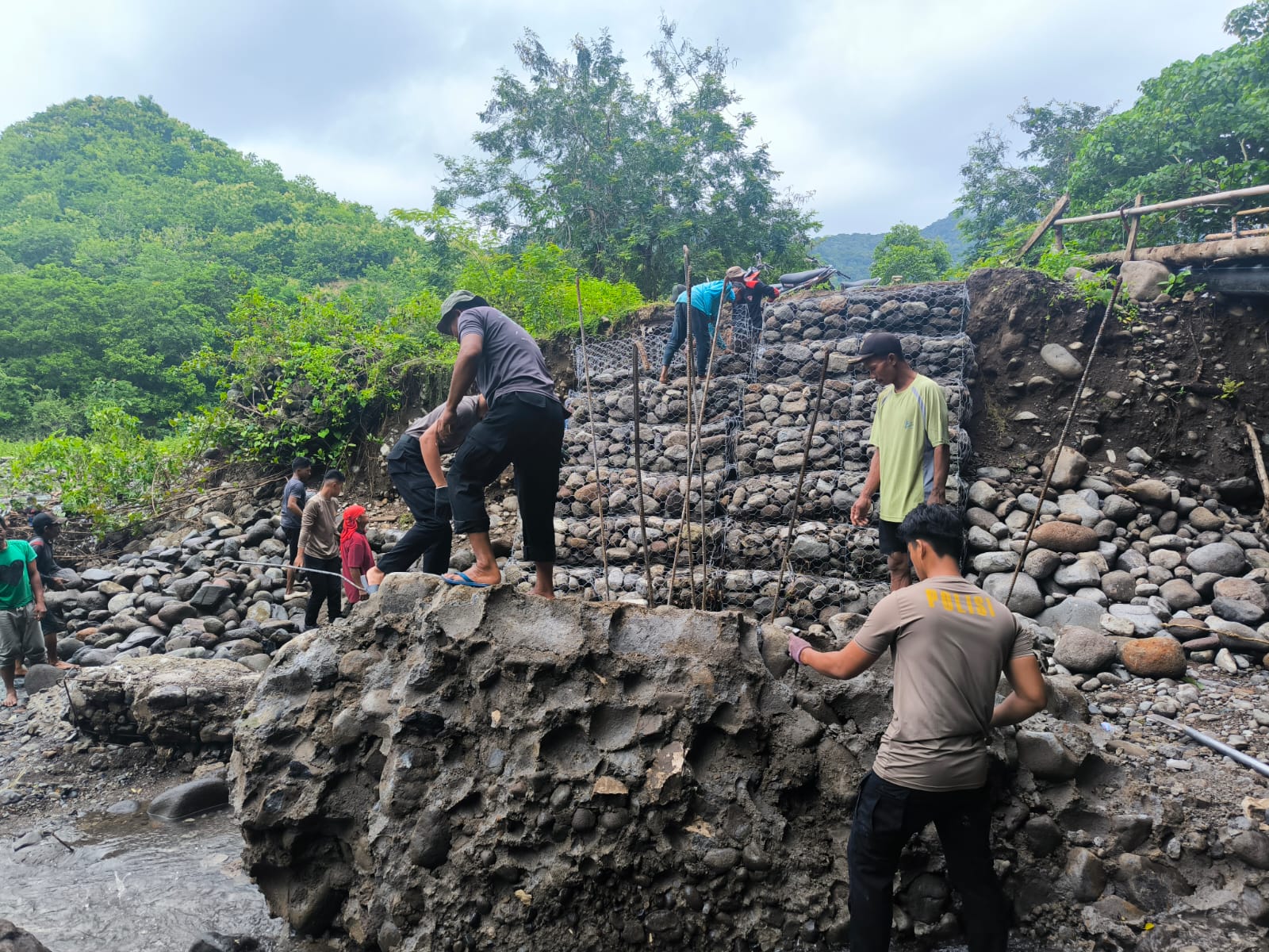 Pembangunan jembatan melibatkan 20 personel Batalyon B Pelopor Satbrimob Polda Sulsel dan didukung 10 personel Satsabhara Polres Barru. Para personel bergotong royong membersihkan puing-puing jembatan lama, menggali lubang tiang, serta membuat rangka cakar ayam sebagai pondasi tiang jembatan.