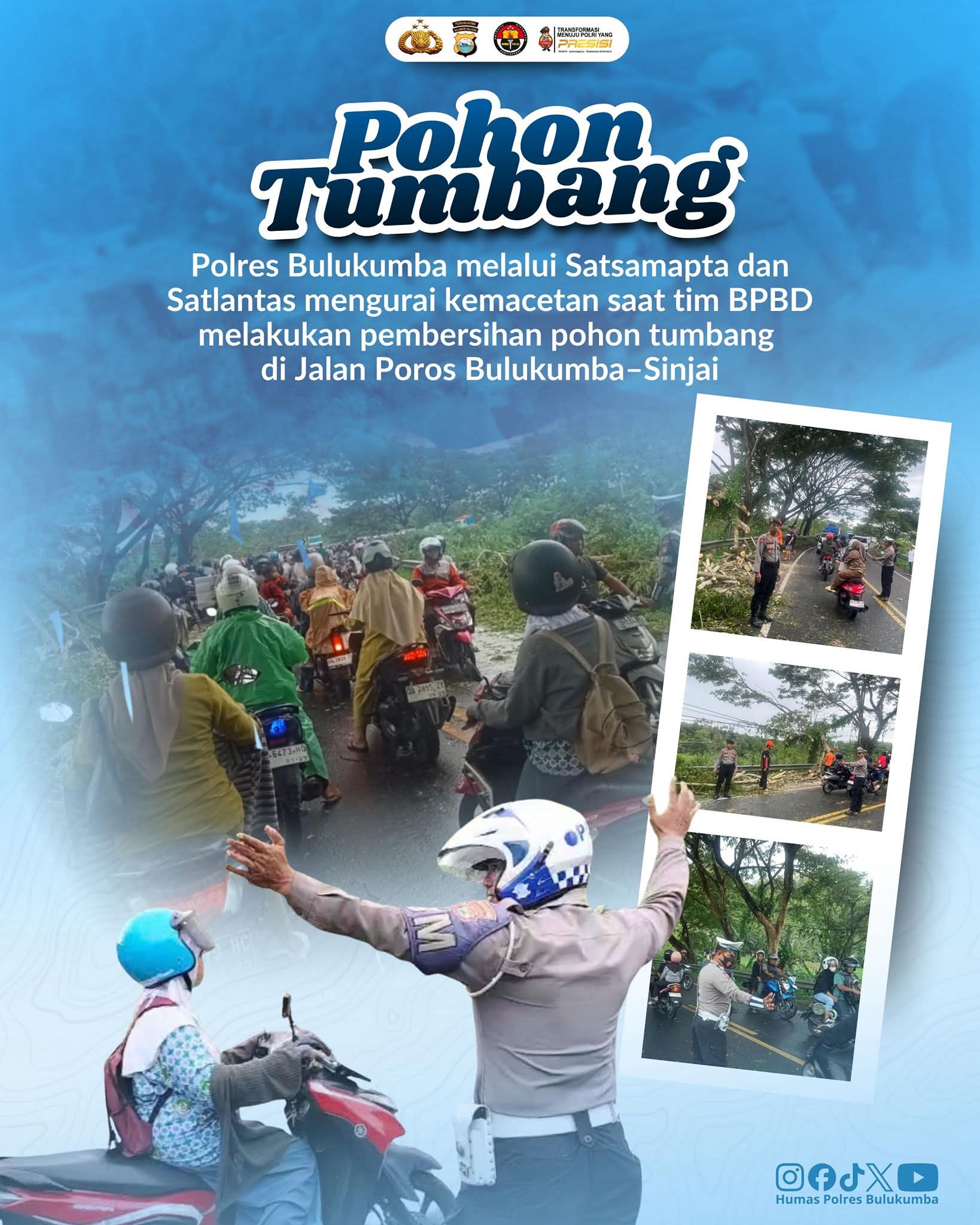 “Personel Sat Samapta bersama Satuan Lalu Lintas Polres Bulukumba melakukan pengaturan lalu lintas sehingga arus kembali lancar, sementara Tim BPBD membersihkan pohon tumbang yang menghalangi jalan,” jelas AKP H. Marala.