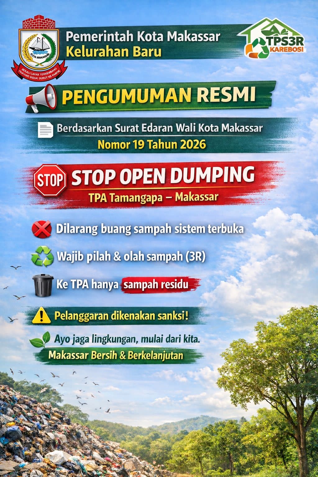 Kebijakan ini diharapkan mampu menciptakan sistem pengelolaan sampah yang lebih efisien, berkelanjutan, dan ramah lingkungan. Di sisi lain, masyarakat juga diimbau untuk meningkatkan kesadaran dan disiplin dalam memilah serta mengelola sampah.