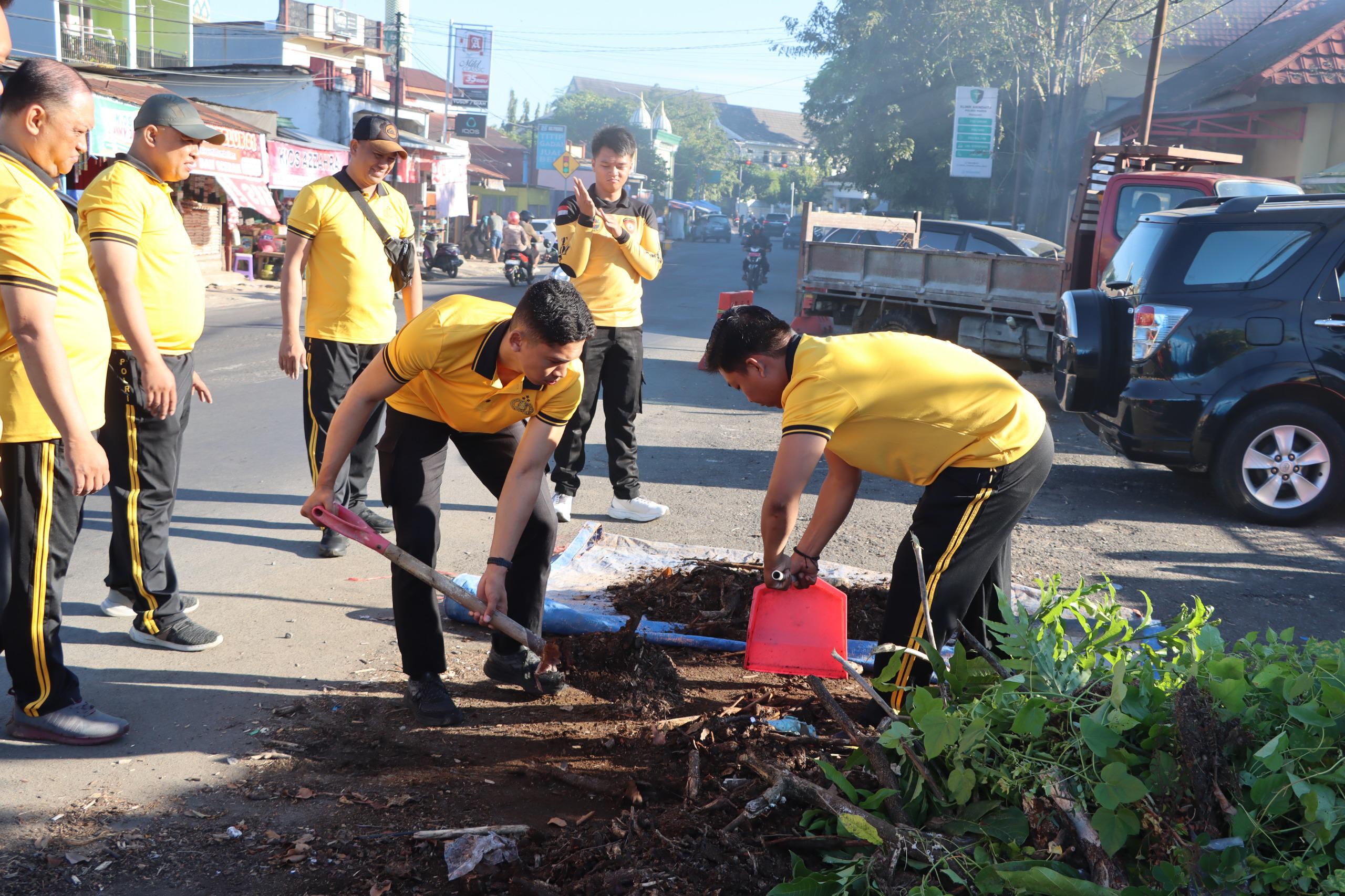 Jaga Kebersihan Lingkungan, Personel Polres Maros Gelar Kurve Ciptakan Mako Bersih dan Asri