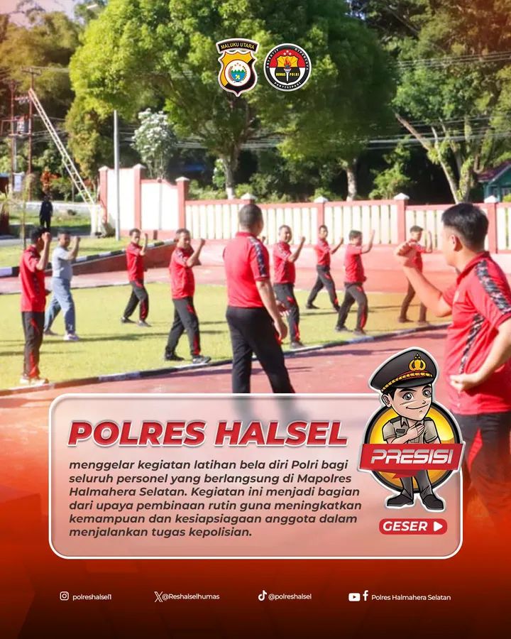 Ia menambahkan bahwa dengan kemampuan bela diri yang baik, diharapkan seluruh personel Polres Halmahera Selatan dapat bertindak secara tepat dan terukur di lapangan, serta tetap mengedepankan sikap humanis dalam memberikan perlindungan, pengayoman, dan pelayanan kepada masyarakat.