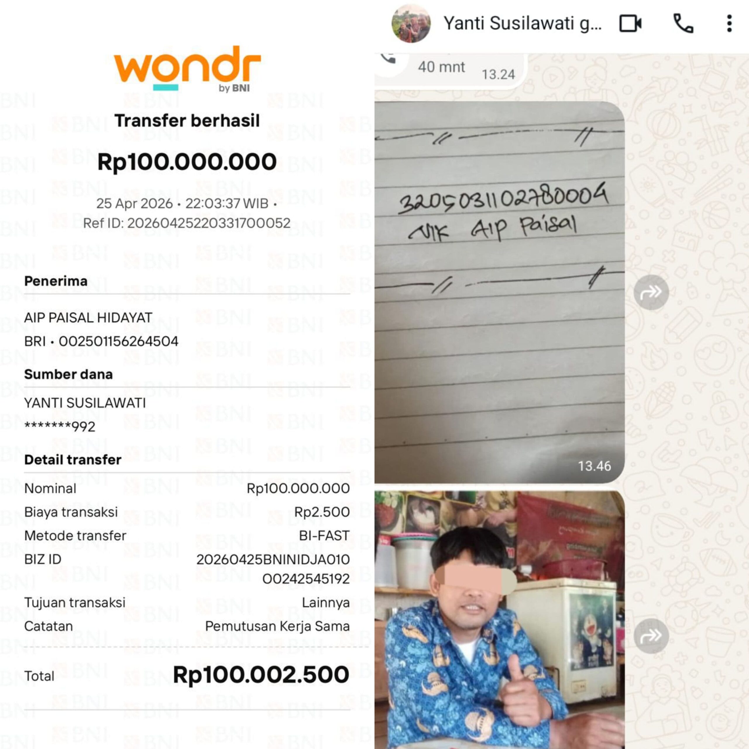 Sorotan makin tajam saat polemik yang sempat digiring serius itu mendadak berujung damai setelah transfer Rp100 juta dilakukan pada 25 April 2026.